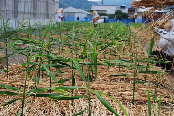 生姜畑のワラ敷き