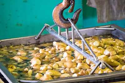 生姜にとって最適な温度と湿度を保ち、お客様の希望される大きさや種類ごとに選定して出荷しています。